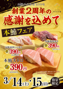 山陰のお寿司ヒトトセは3月14日と15日2周年を迎えます。